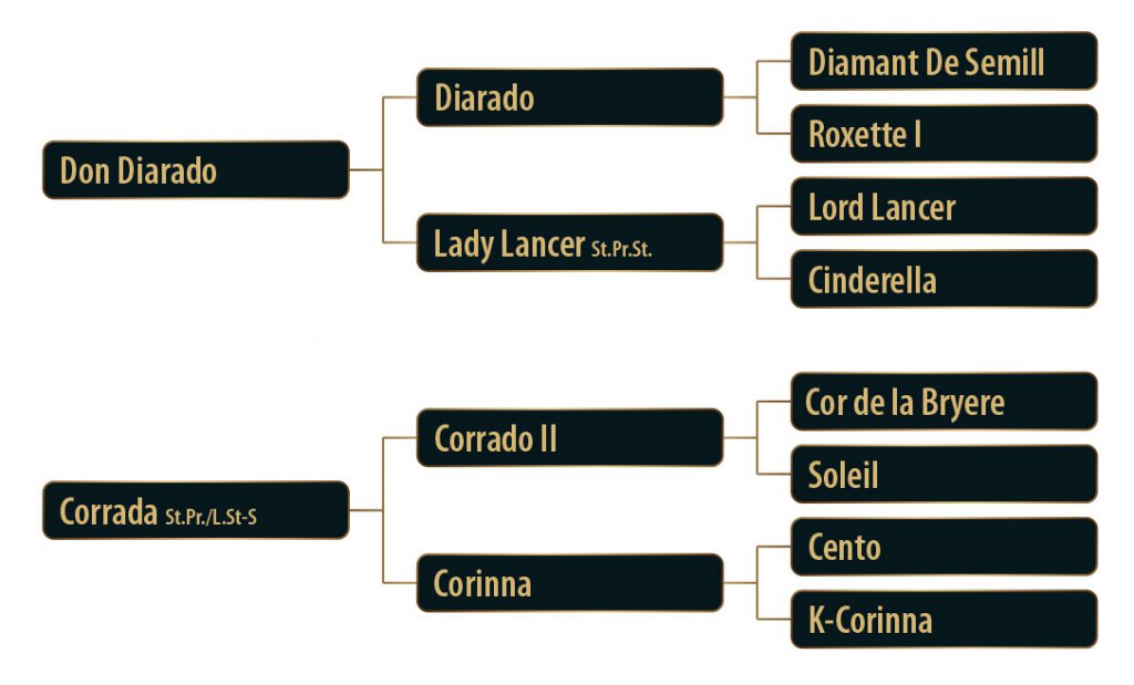 St. Pr. St. Corrada, Mutter von Special Effect, hat mit Dia Corrado einen weiteren vielversprechenden Hengst hervorgebracht. Selbst mehrfach in S-Springen hoch platziert unter Lars Grafmüller, dem Züchter dieses Junghengstes, stammt aus dem bekannten Holsteiner Stutenstamm 173. Großmutter St.Pr.St. Corinna brachte den erfolgreichen Quibell v. Quintero S****-Springen erfolgreich mit Henrik Eckermann/ Schweden hervor. Urgroßmutter ist die Mutter von K-Corinna: Lancaster v. Latus II in S*-Springen erfolgreich unter Roland Engelbrecht.