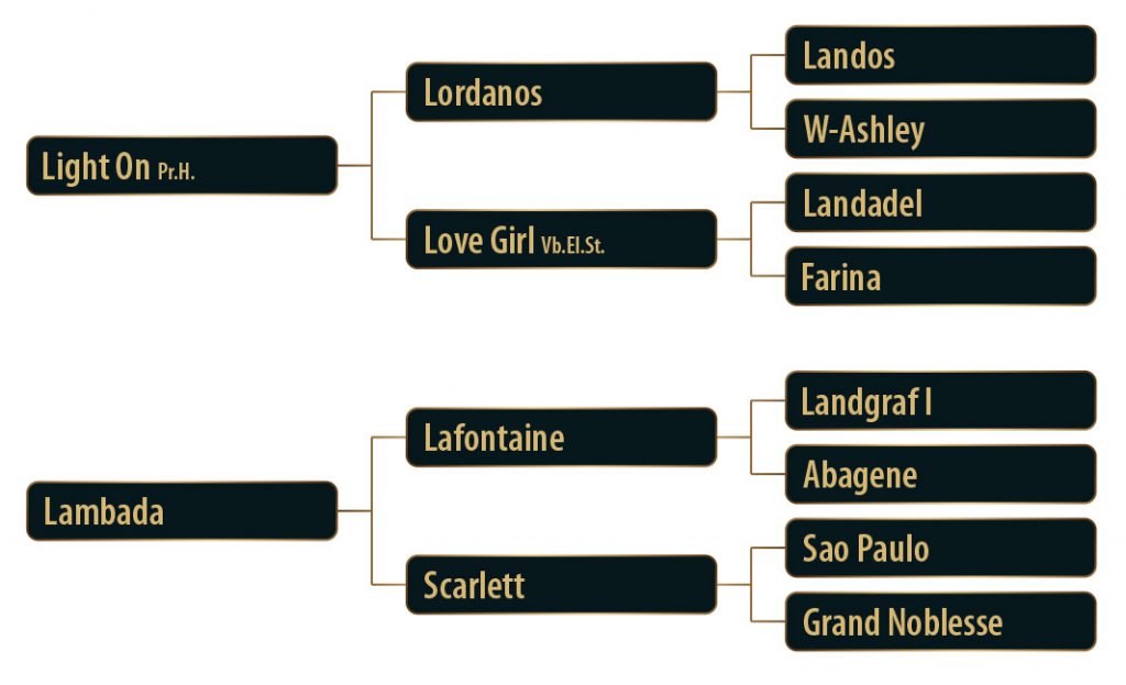 Mit Lambada der Mutter von Light Star konnte Rene Tebbel 3 gekörte Hengste züchten. Cheval de Couer v. Coupe de Coeur und Quidamo v. Quidam´s Rubin selber im Sport S* Springen international erfolgreich. Großvater von Light Star ist der Hannoveraner Paradehengst und Sportpferdemacher Lafontaine. Dieser war international unter Hauke Luther im S*** erfolgreich. Den Sandro Sohn, Sao Paulo findet man ebenfalls in diesem Leistungspedigree, welches durch Gletscher v. Glander , Lantaan und dem legendären Ladykiller xx abgerundet wird.