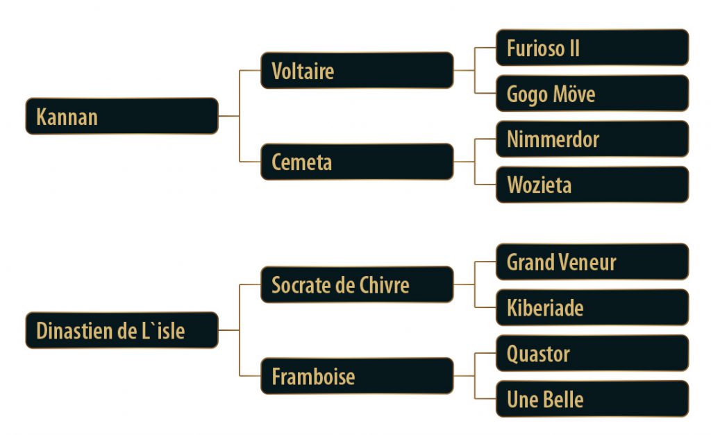Vater Kannan trägt das Blut aus allen wichtigen Springvererbern Europas. Voltaire, Furioso, Nimmerdor, Gotthard, Farn, Le Mexico, alle großen Vorläufern der modernen Springpferdezucht. Kannan ist eindeutig ein Produkt seiner Gene. Selber ist er auch bekannt, dass er sportlich hocherfolgreich war. Kannan gewann den Grand Prix von Deauville und 2004 gewann Kannan in Paris Bercy und Jardy sowie viele andere Wettbewerbe. Er war ein ständiges Mitglied des Französisch-Team, das die Samsung Super League im Jahr 2003 und 2004 gewonnen hat.